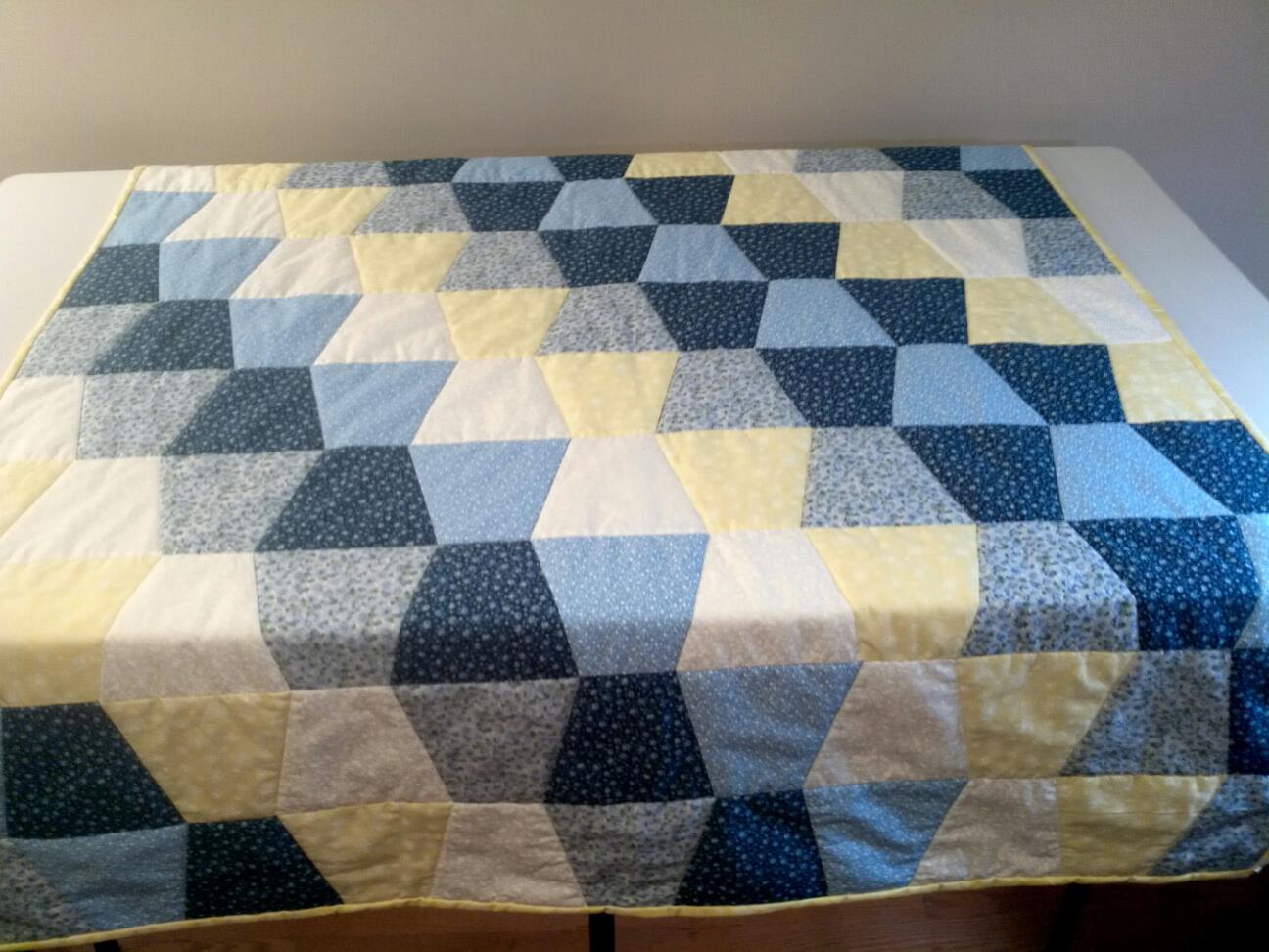 This tumbler quilt I made using the AccuQuilt Cutter and it sure saved me a lot of time instead of cutting each block out. This quilt was a present for my mother-in-law. I told her to use it but she refuses too..she thinks she will ruin it and hangs it in the guest room!